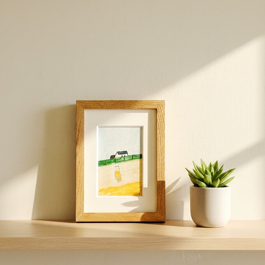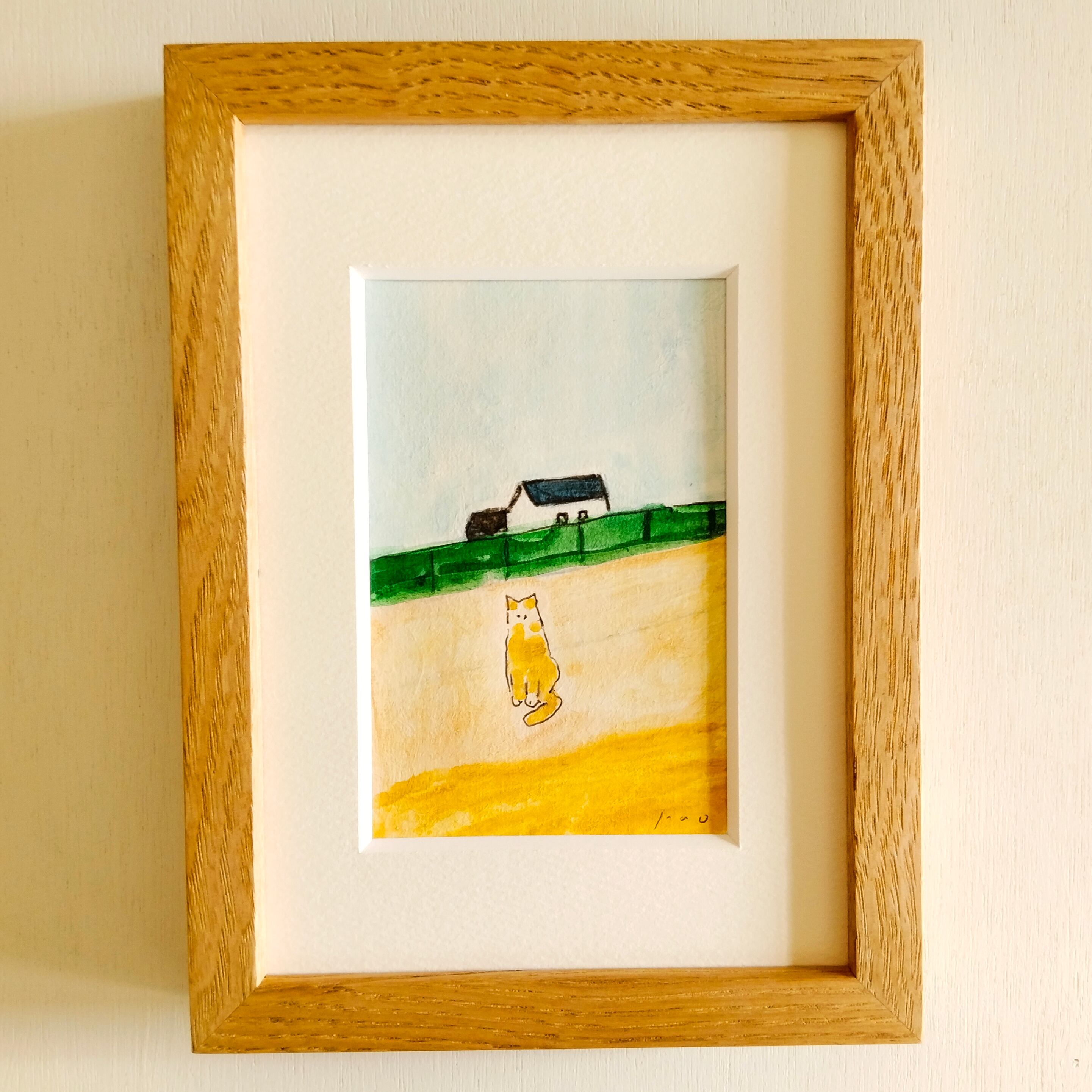 【猫の絵】原画「猫がいる場所」 ※2L木製額縁入り・水彩・インテリアアート