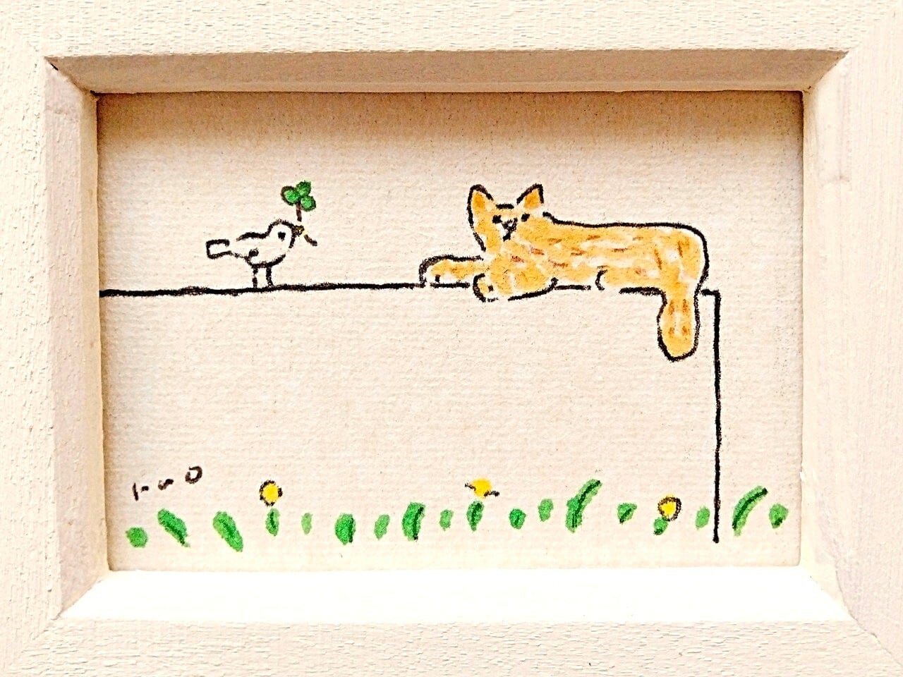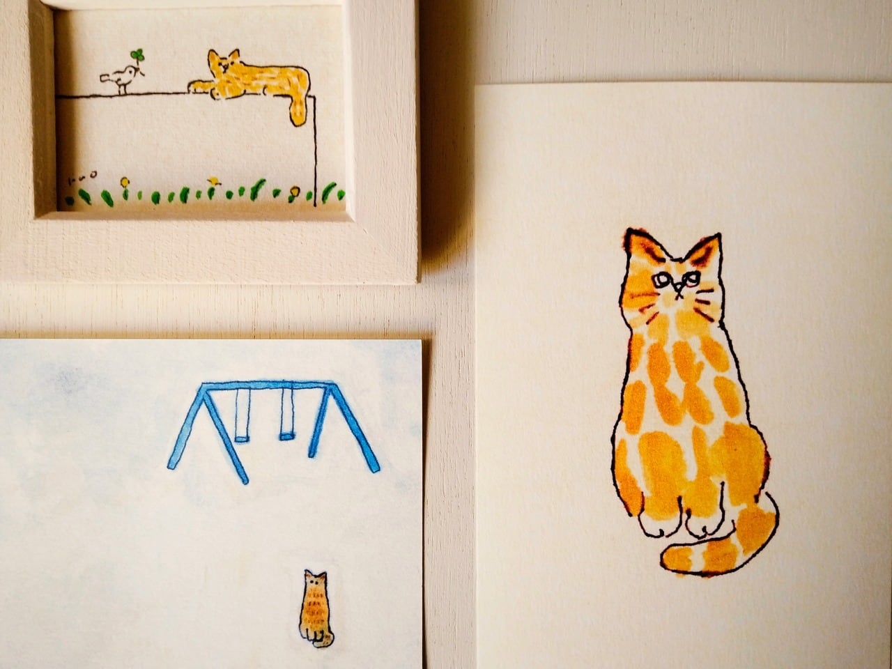 絵画 絵 イラスト イラスト画 イラストレーター 水彩 アクリルガッシュ 額縁 フレーム インテリア ミニイラスト ポストカード 絵葉書 猫 猫の絵 茶トラ猫 猫イラスト 猫の日 猫の日2026