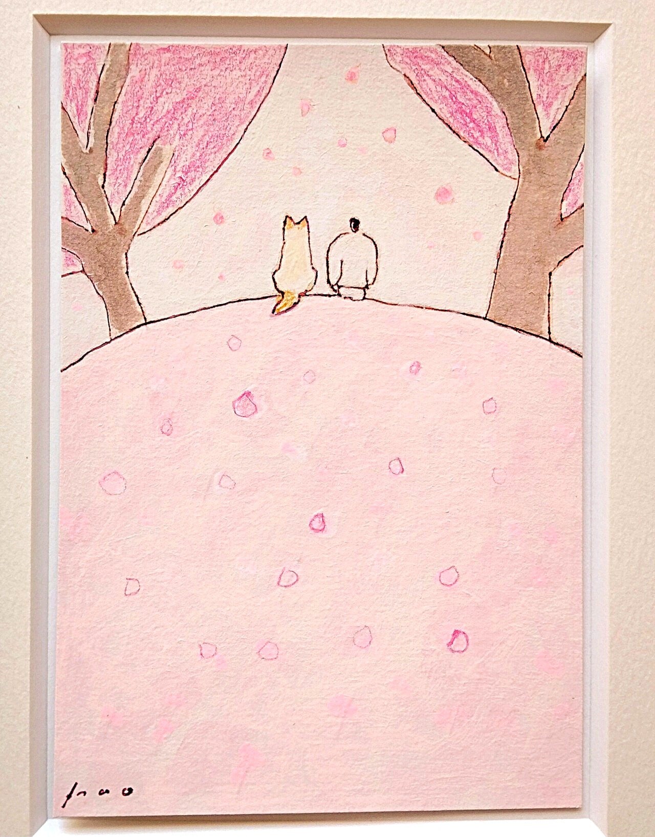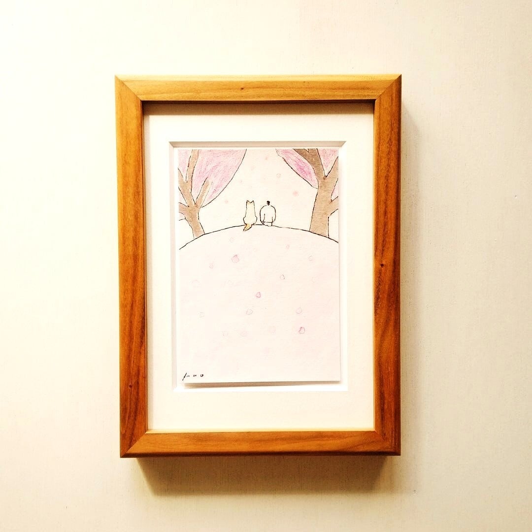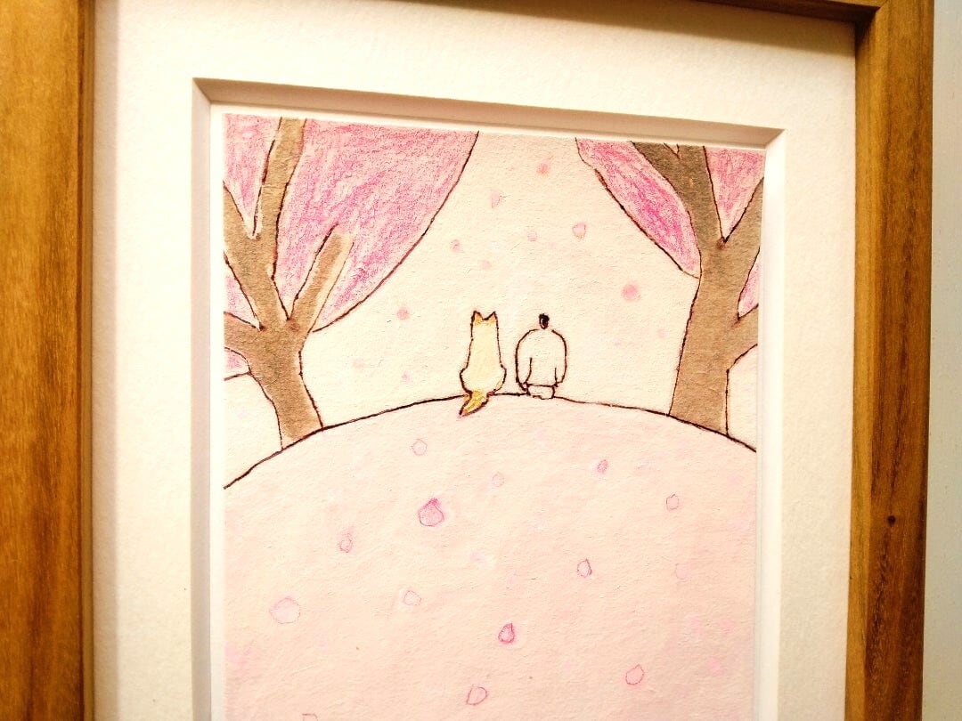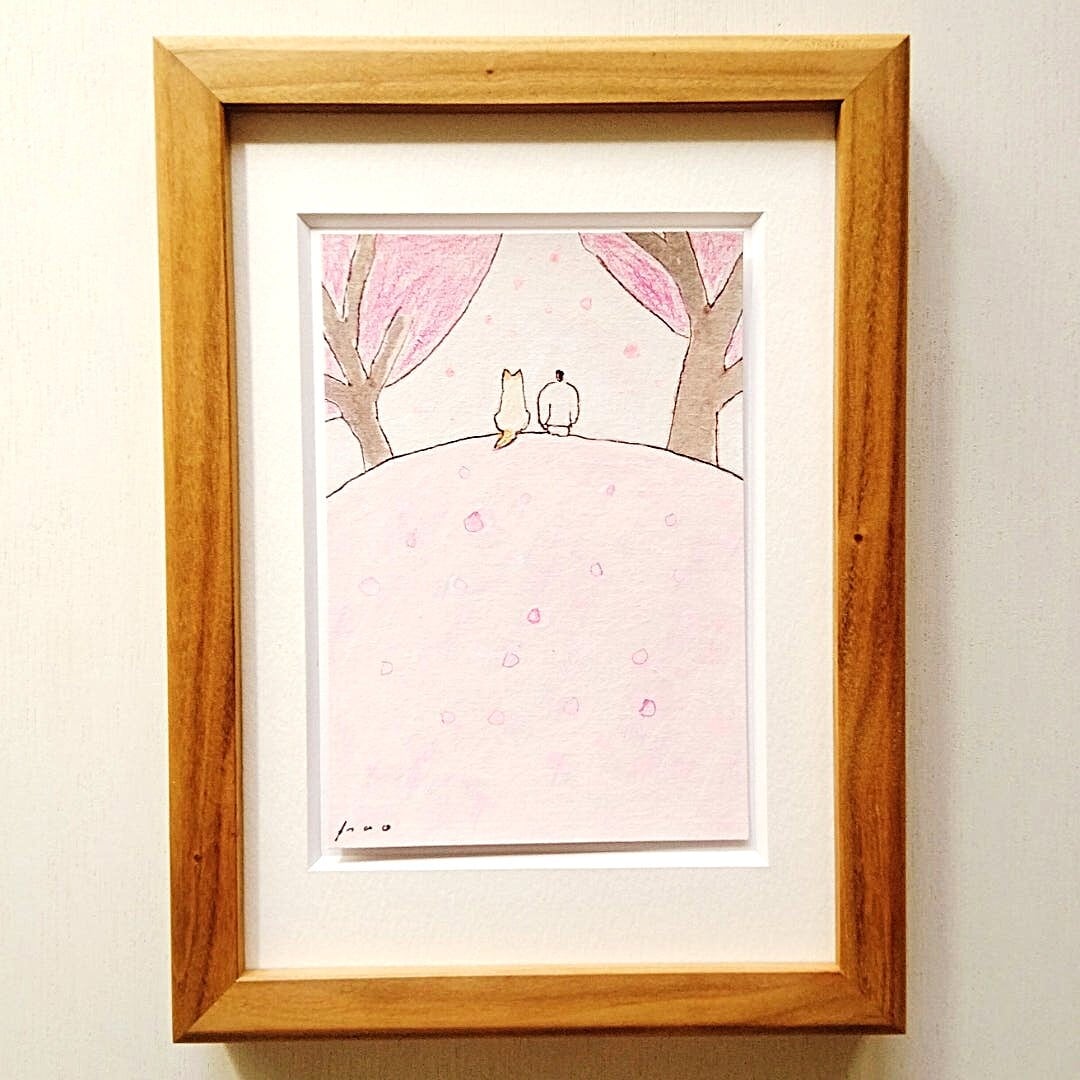 インテリア インテリアアート イラスト イラストレーター アナログイラスト 一点物 額縁 オリジナル額 シンプル ナチュラルインテリア 北欧インテリア 北欧スタイル 新築祝い 引っ越し祝い ギフト 水彩 水彩画 桜 春 犬の絵 リラックス