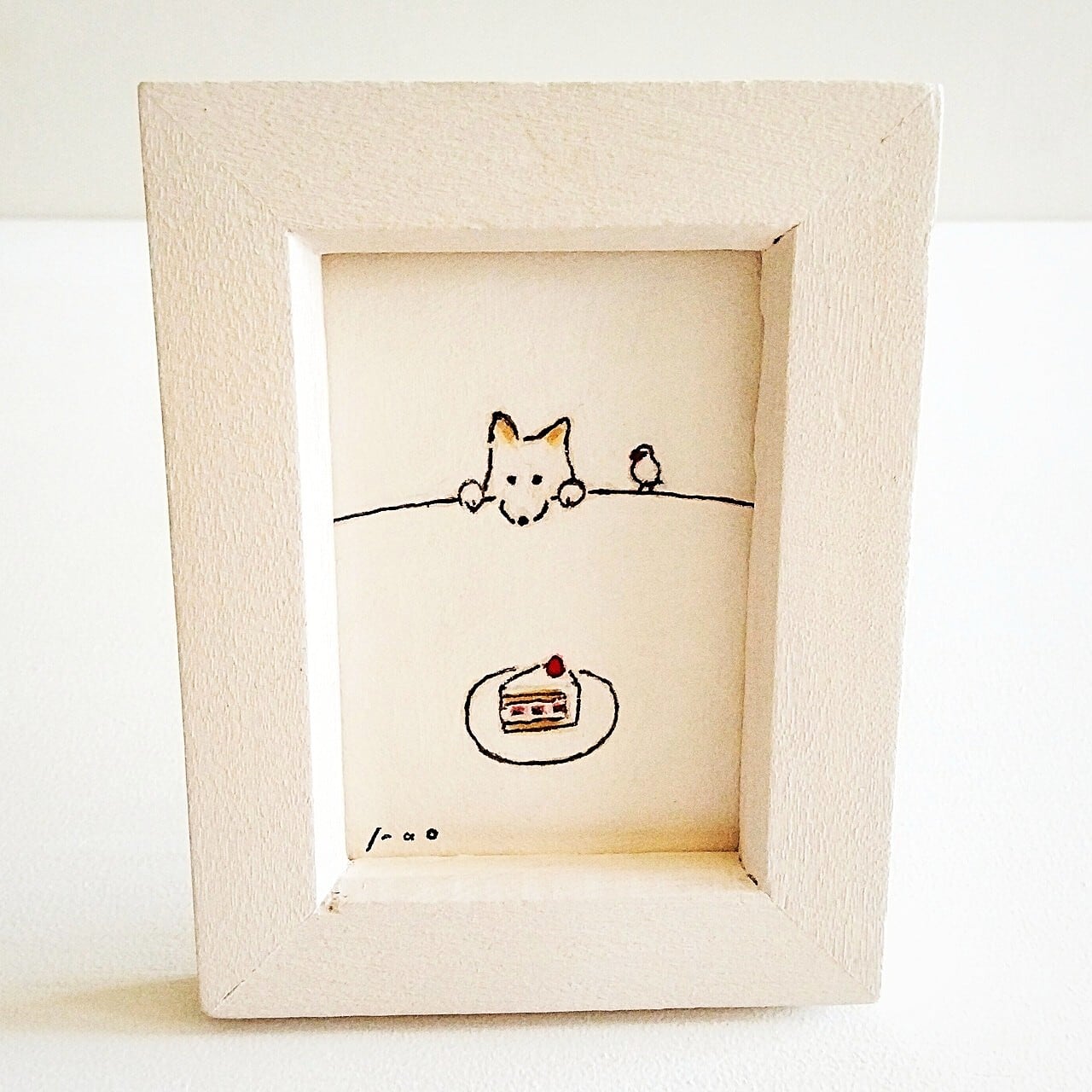 【受注制作】ミニ原画「ショートケーキ」・イラスト・水彩・犬の絵・送料無料