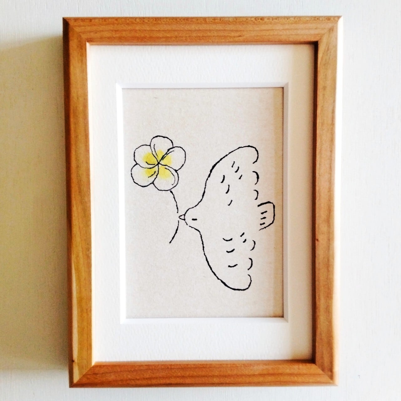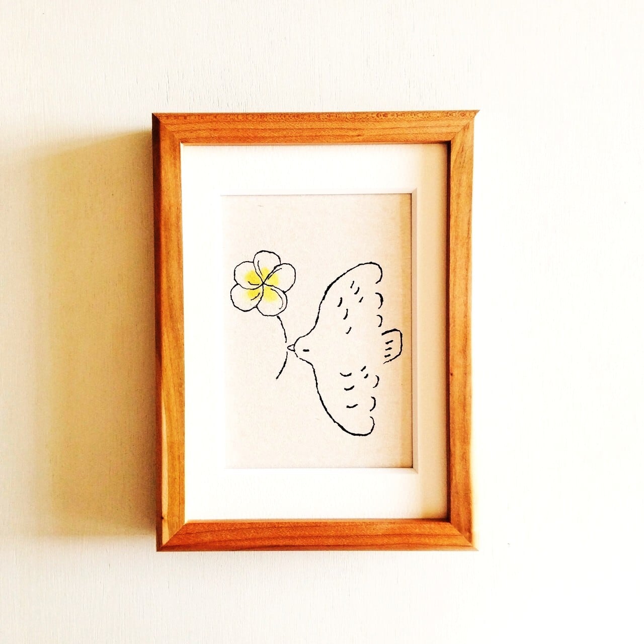 インテリア インテリアアート イラスト イラストレーター アナログイラスト 新築祝い 引っ越し祝い 結婚祝い 誕生日 ギフト 北欧 北欧インテリア 北欧スタイル ナチュラル 鳥 リラックス 癒し プルメリア 夏 かわいい