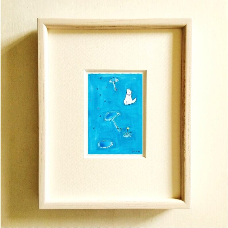 犬のイラスト|原画「rainy day」※木製額縁入り(インチサイズ)インテリアアート