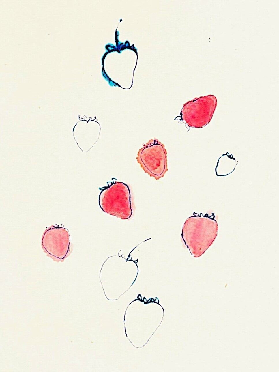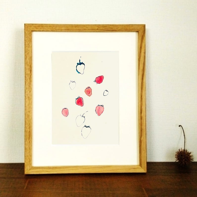 「いちご」イラスト 原画 ※木製額縁入り(インチサイズ)北欧インテリア