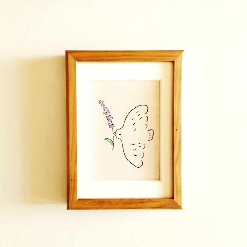 インテリア インテリアアート イラスト イラストレーター アナログイラスト 新築祝い 引っ越し祝い 誕生日 ギフト 北欧 北欧インテリア 北欧スタイル ナチュラル 鳥 リラックス 癒し 夏 ラベンダー 紫