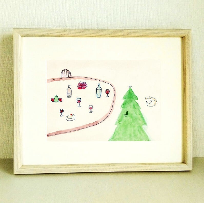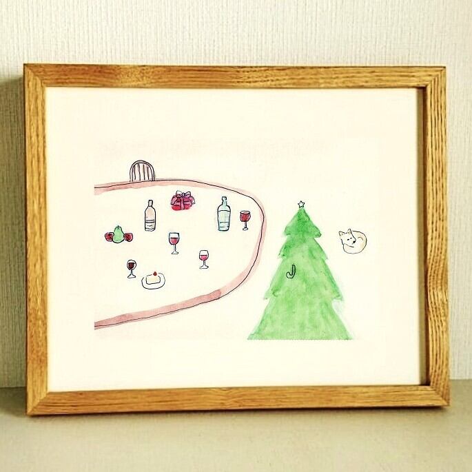 イラスト|原画「楽しい季節」 ※木製額縁入り(八つ切りサイズ)インテリアアート