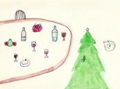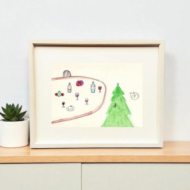 ホリデーシーズンのワンシーンを描いた、シンプルでかわいい絵です。