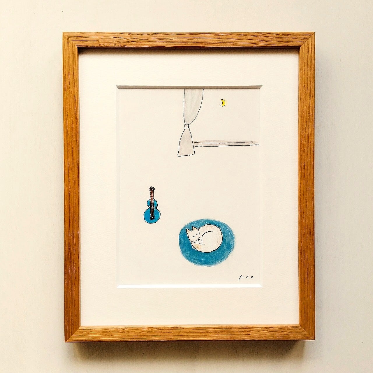 「夜風」原画 ※木製額縁入り(インチサイズ)イラスト 水彩 インテリアアート
