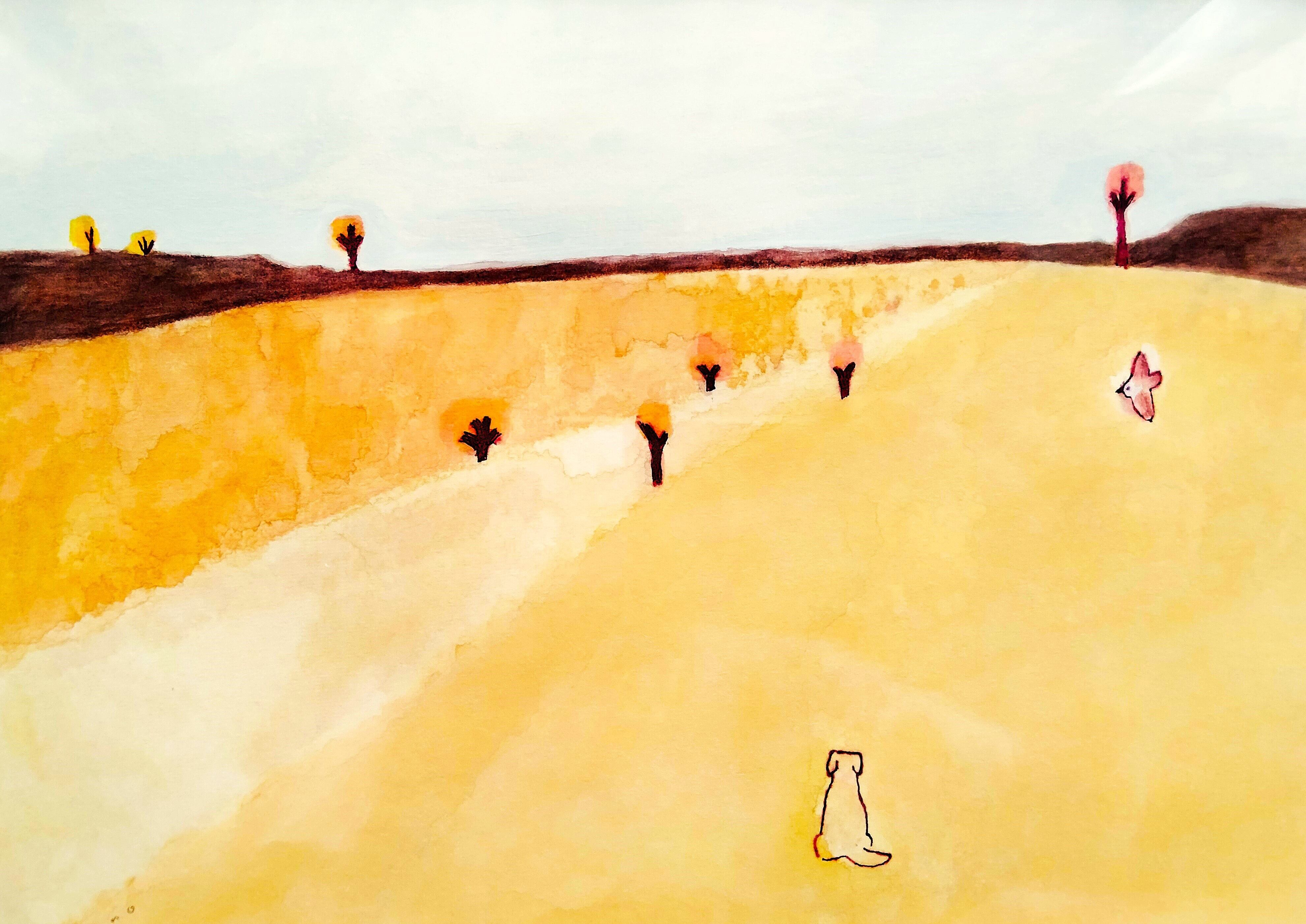 一点物|絵画|原画「原っぱ」 イラスト ※額縁入り(四つ切サイズ)