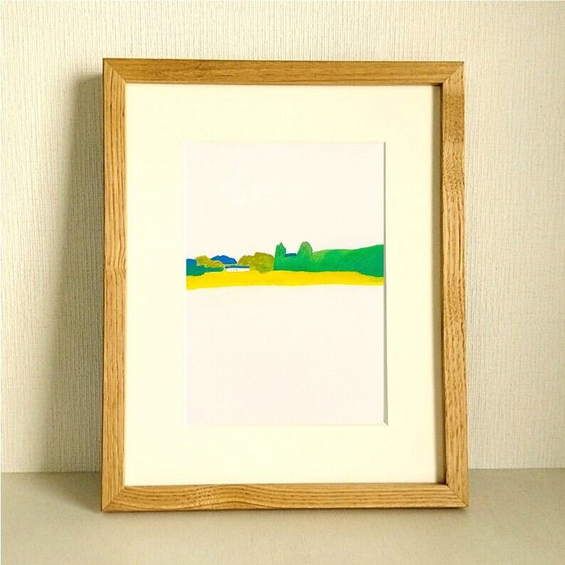 インテリア インテリアアート イラスト イラストレーター アナログイラスト 北欧インテリア 原画 手描きイラスト 一点物 風景画 春 春の絵 黄色 リラックス