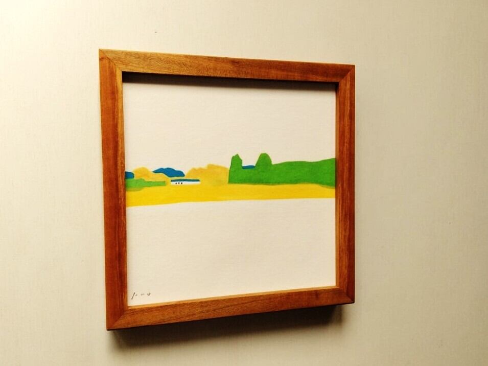 風景画|原画「菜の花の咲く季節」イラスト ※木製額縁入り