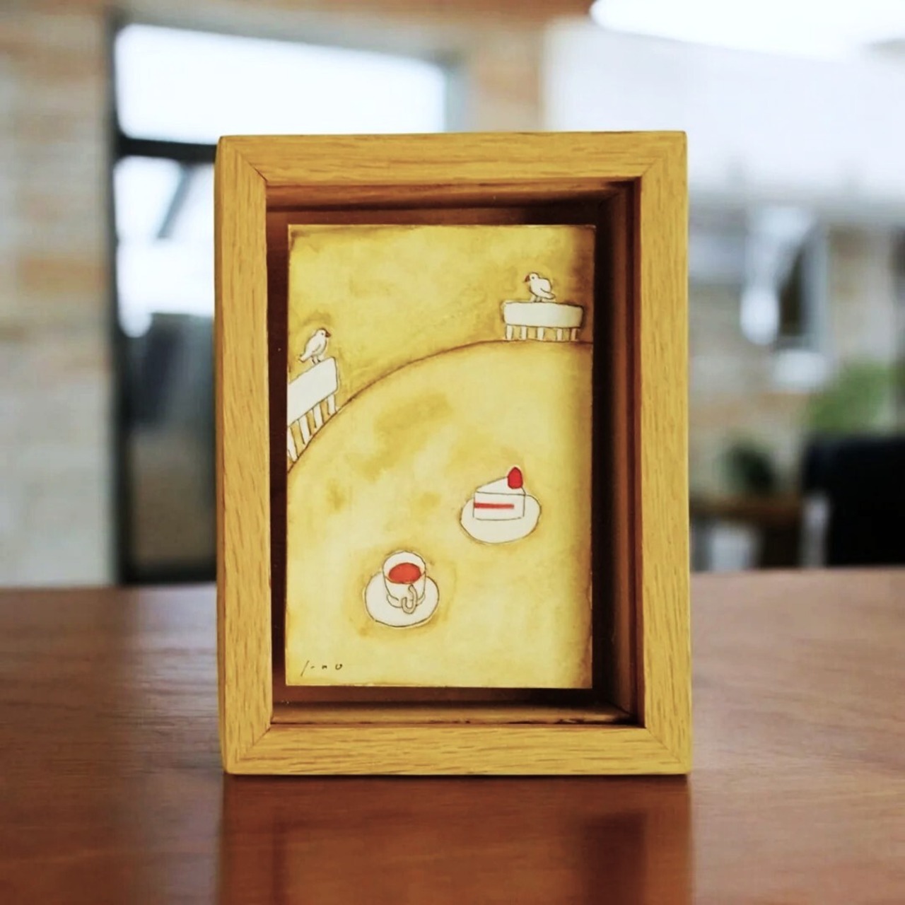 ボックス額縁入り|イラスト|原画「おしゃべりな午後」インテリアアート