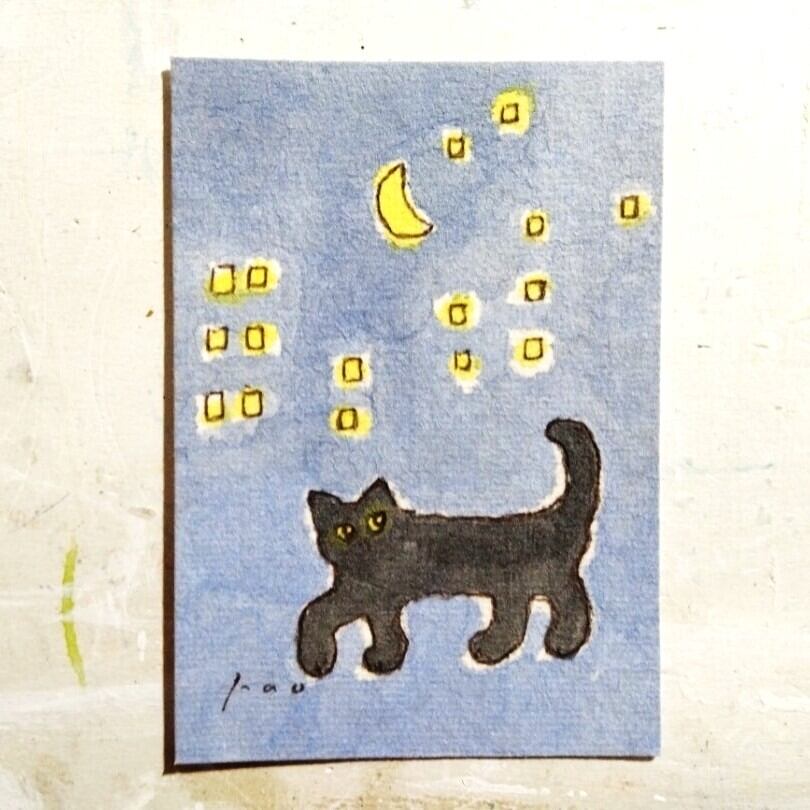 水彩画 額縁 フレーム アート インテリア 猫 猫の絵 黒猫 ねこ