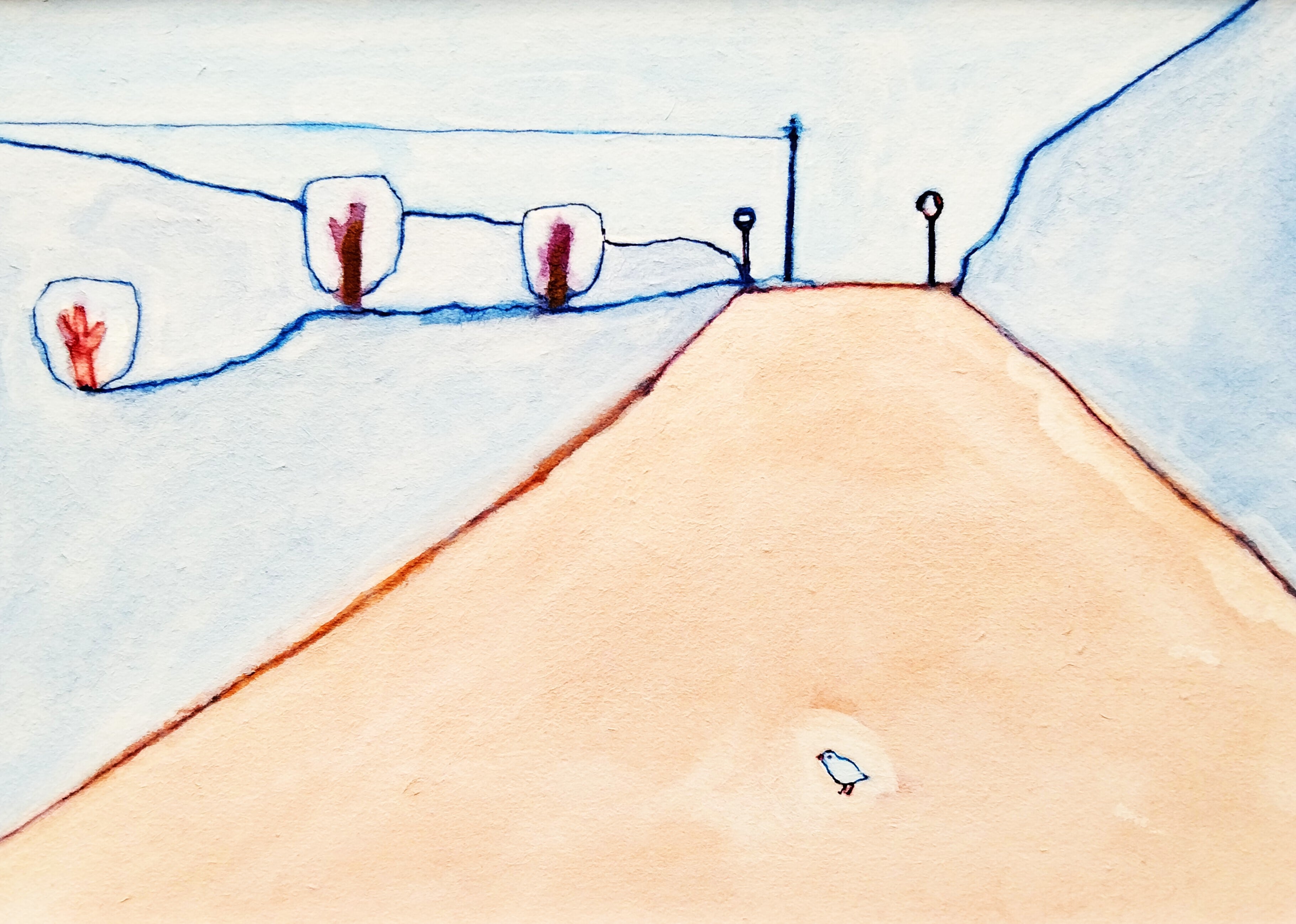 「道」イラスト 原画 ※木製額縁入り(インチサイズ)北欧インテリア 一点物