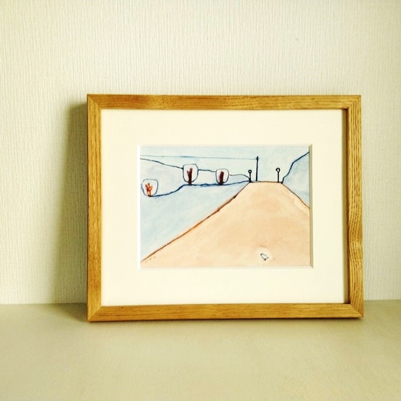 インテリア インテリアアート イラスト イラストレーター アナログイラスト 北欧インテリア 原画 手描きイラスト 一点物 額縁 オリジナル額縁 風景画