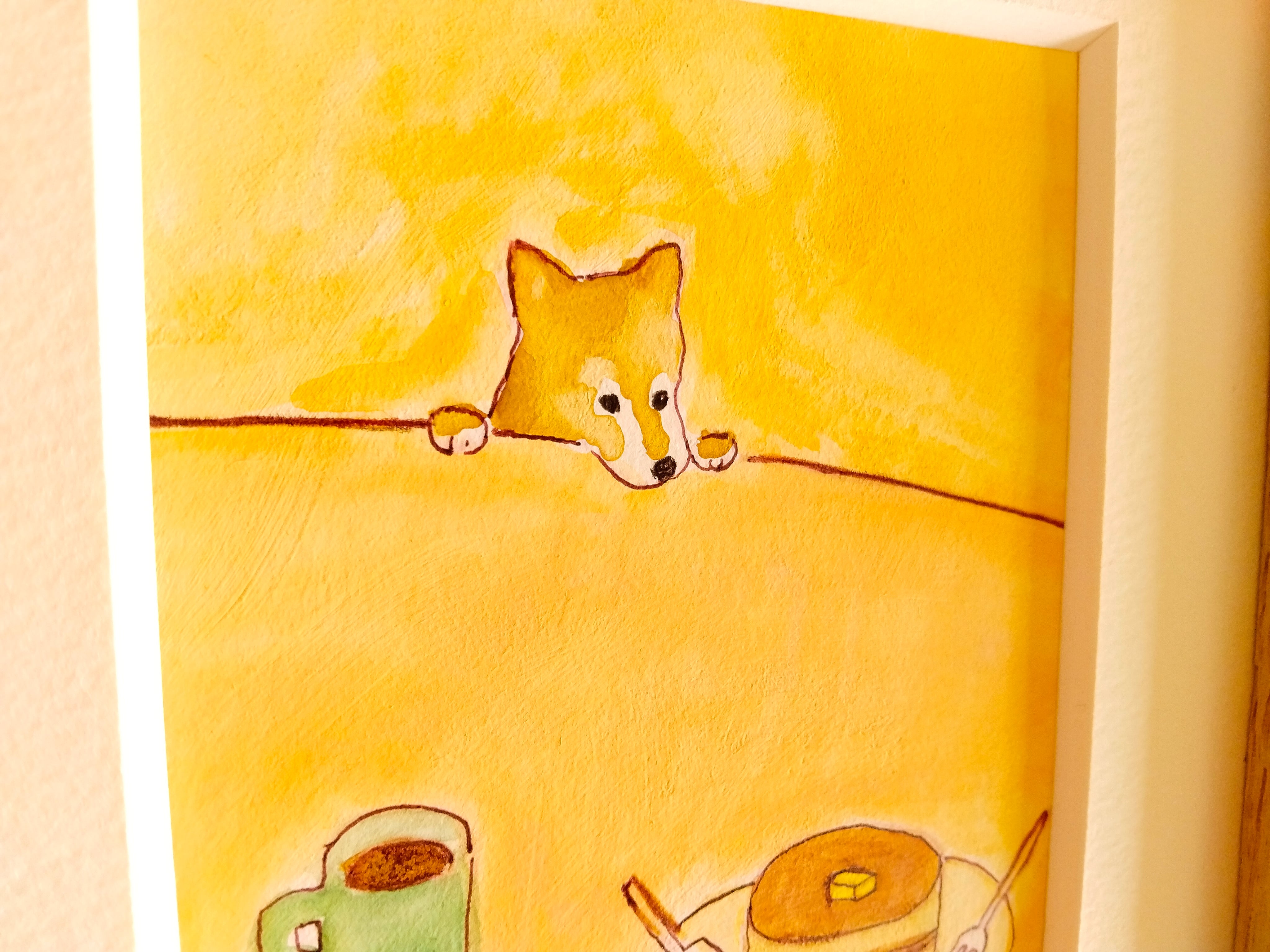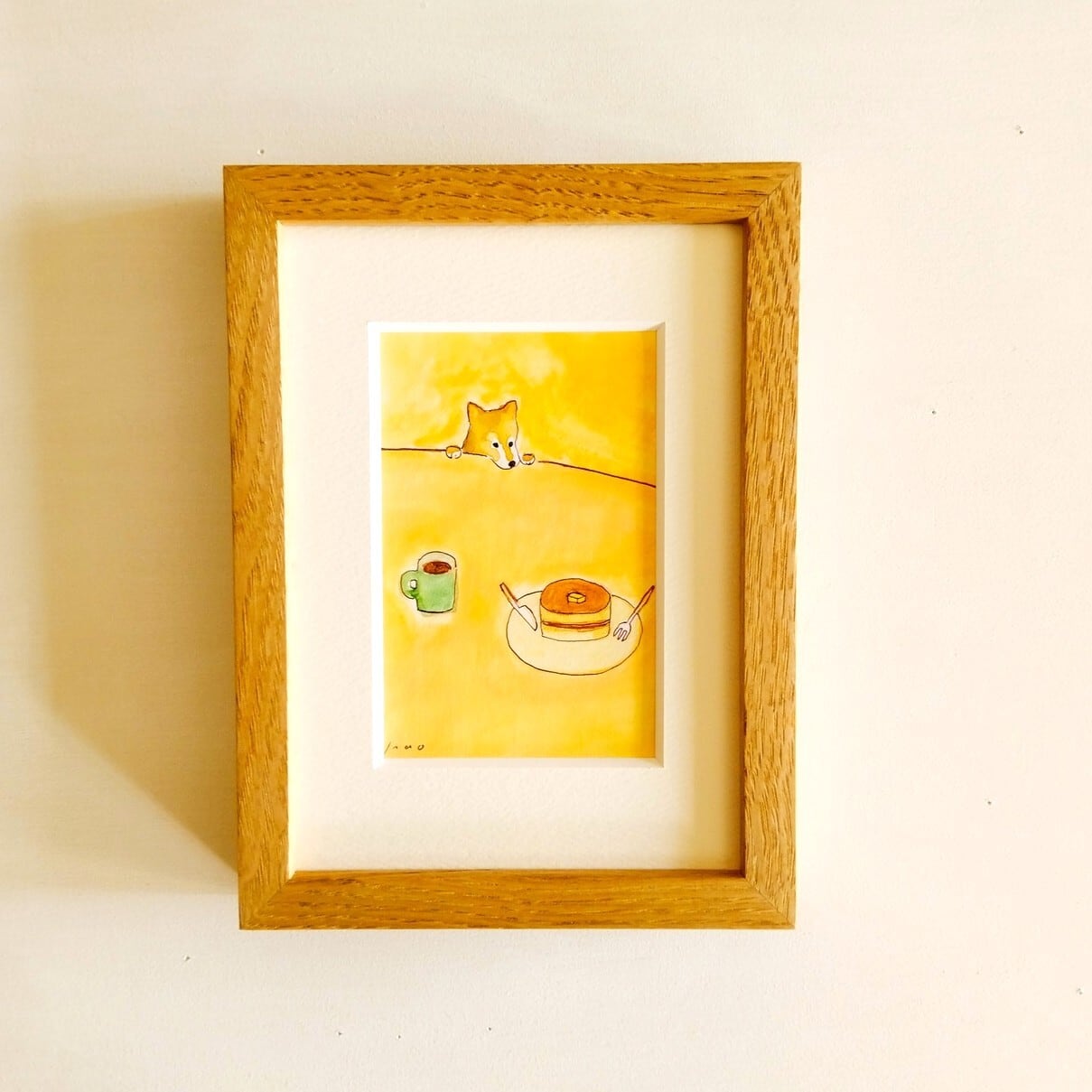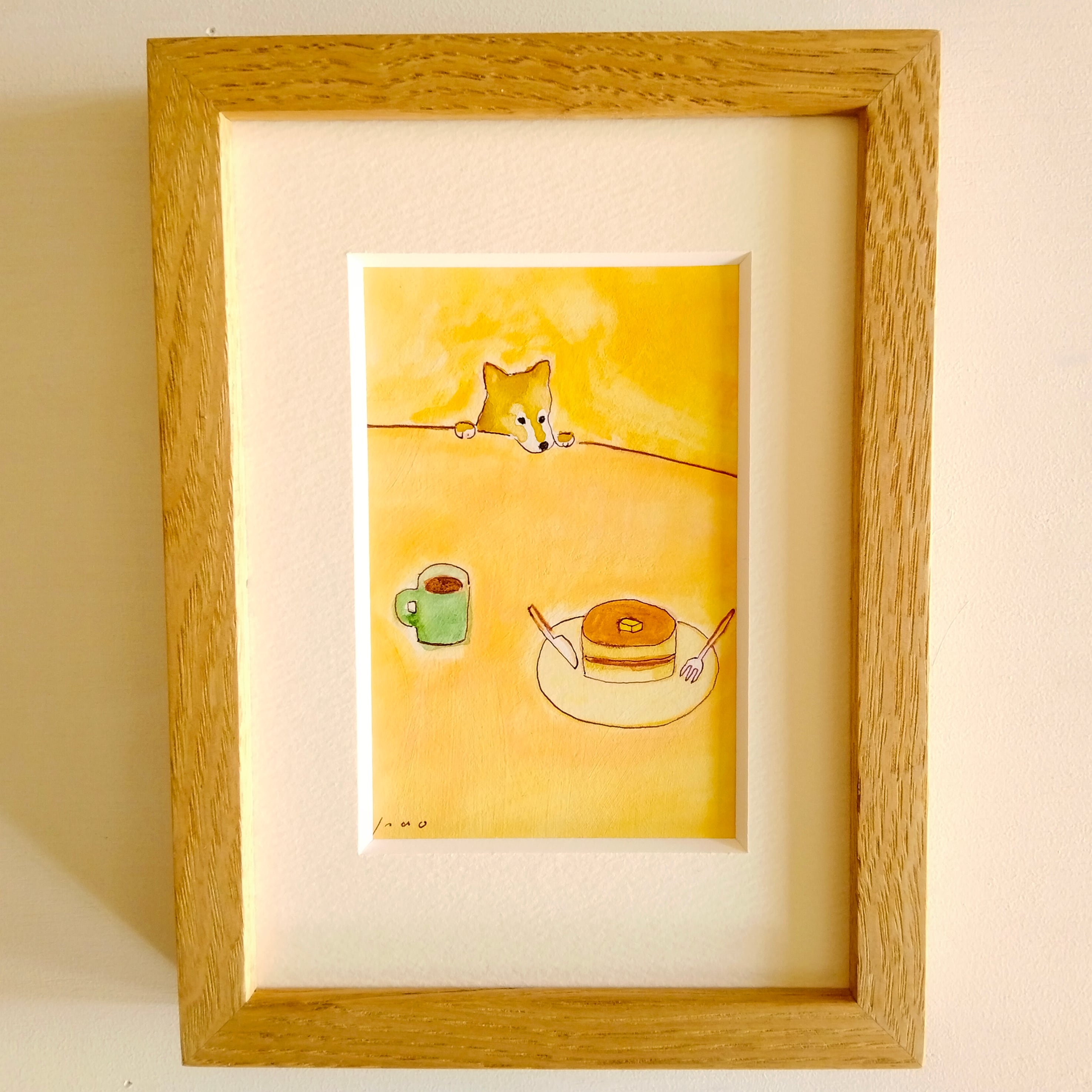 【かわいい柴犬】原画「おやつの時間」 ※2L木製額縁入り・水彩・インテリアアート・犬の絵