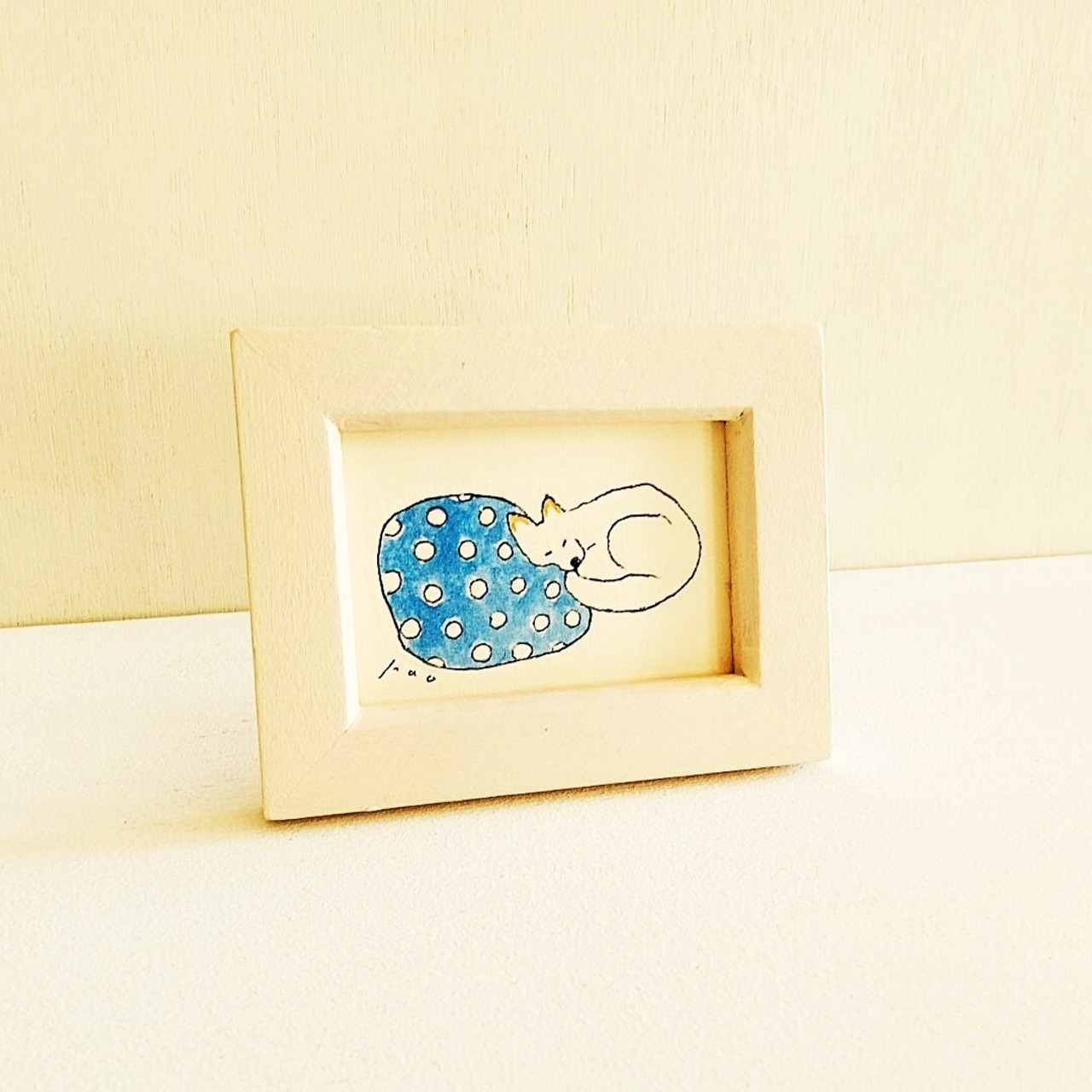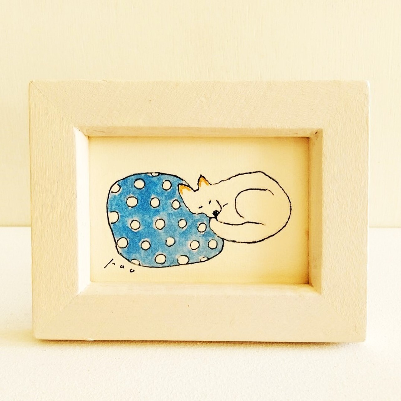 犬イラスト「夢見る白い犬」|※木製ミニ額縁入り