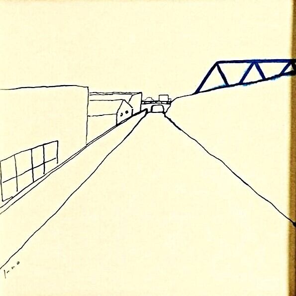 原画「青い橋のある風景」※木製額縁入り(18×18㎝フレーム)