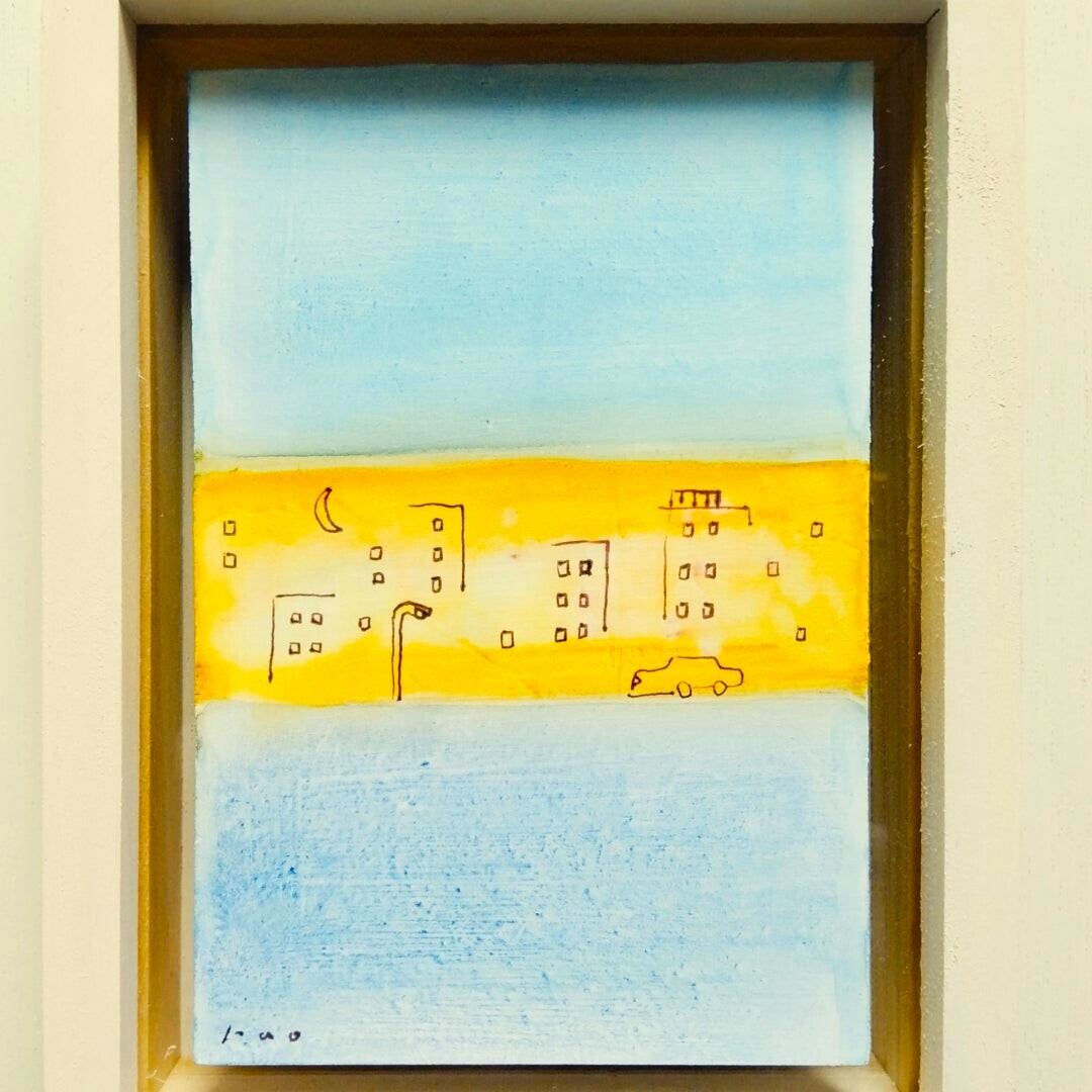 どこかなつかしい夕暮れの絵|水彩原画「夕暮れの町」※額縁入り
