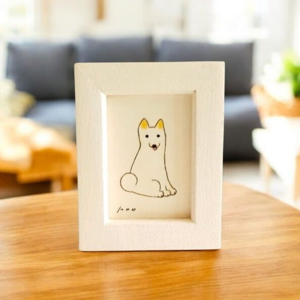 ナチュラルインテリア ギフト 水彩 水彩画 犬の絵 犬 白い犬 リラックス 原画