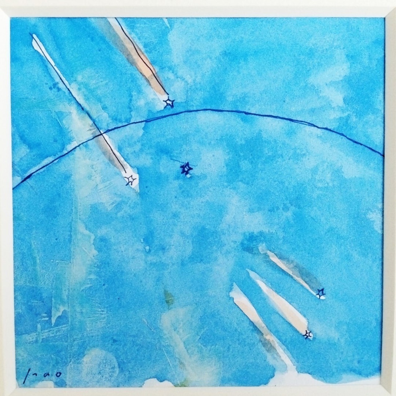 心が穏やかになるような、やさしい青い絵です。