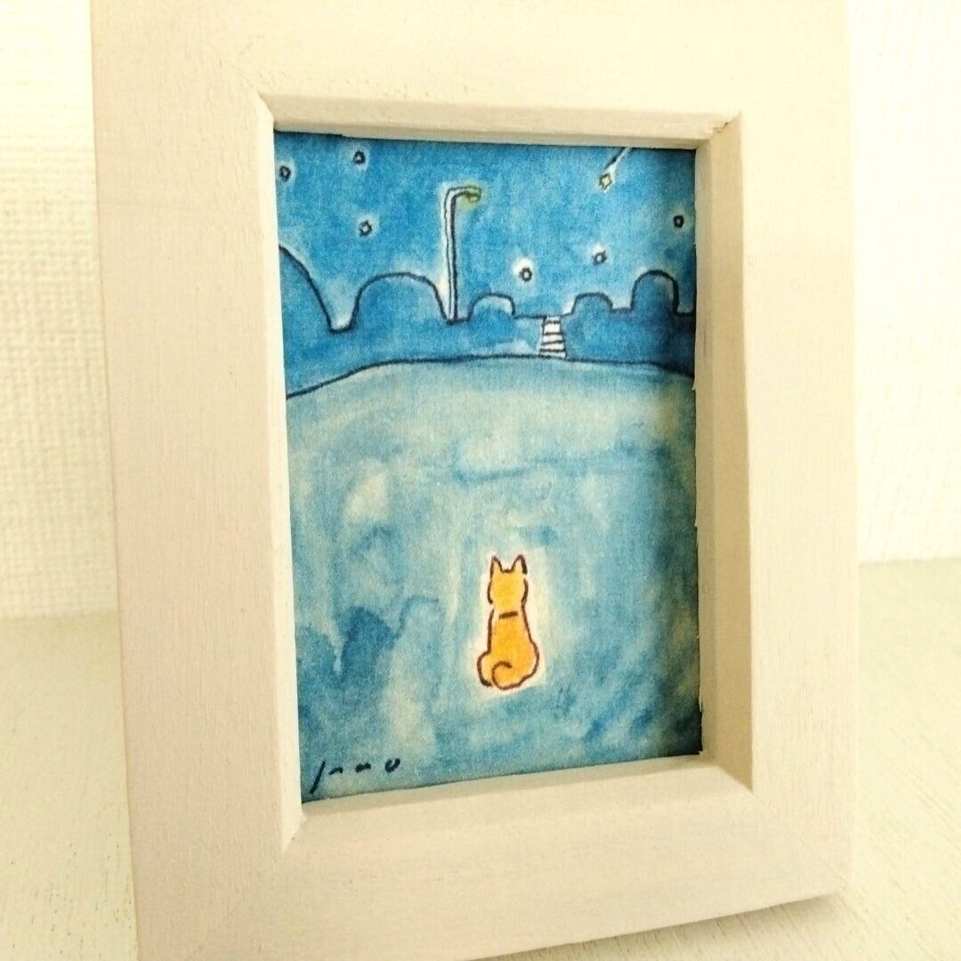 受注制作|犬のイラスト|原画「夜空」※木製額縁入り インテリアアート