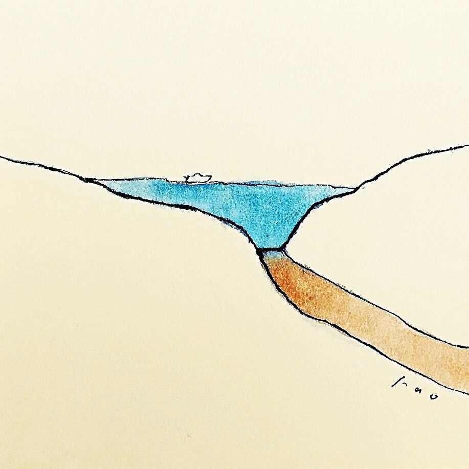原画「海へ続く道」※木製額縁入り(18×18㎝フレーム)
