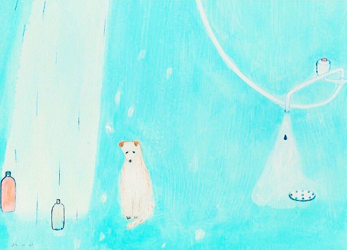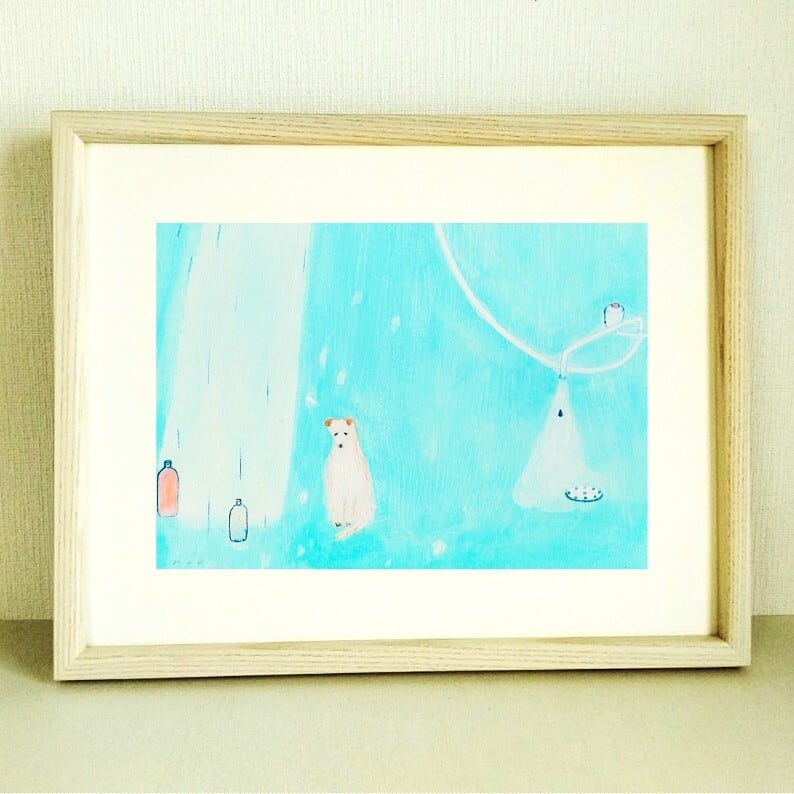 犬のイラスト|原画「シャボン」※木製額縁入り(八つ切りサイズ)