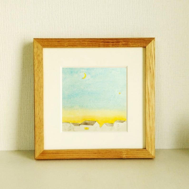 原画「夕刻のひととき(2)」※木製額縁入り(18×18㎝フレーム)