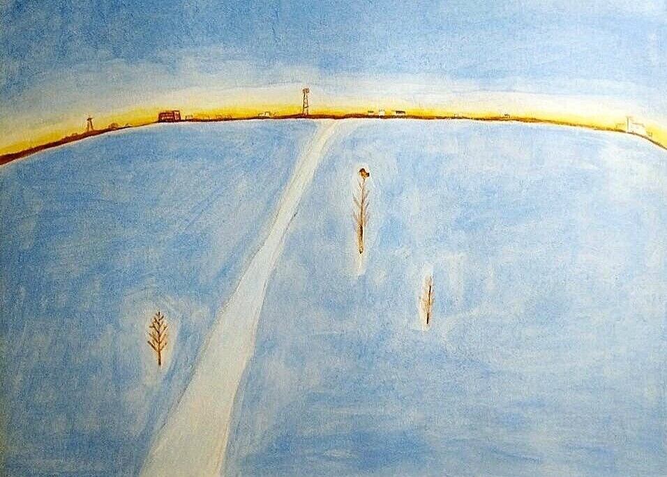 いつか見た風景のような懐かしさ、という感情を意識した心象風景を描いた絵です。